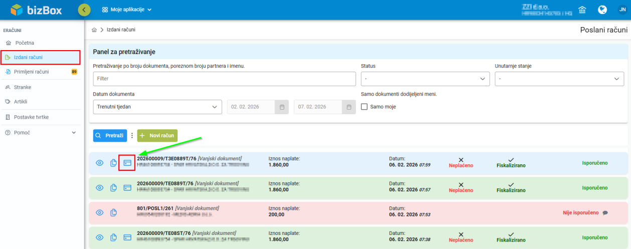 1. U popisu Izdani računi pronađite željeni račun