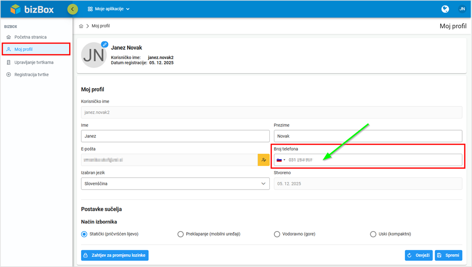 Za promjenu telefonskog broja slijedite ove korake: