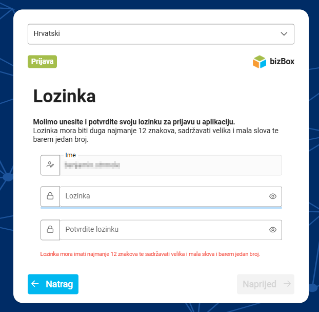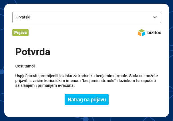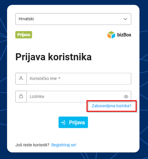 Ako ste zaboravili lozinku i imate poteškoća s prijavom u bizBox, slijedite sljedeće upute za ponovno postavljanje lozinke: