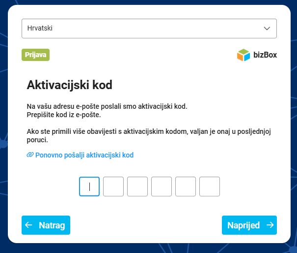 Na vašu e-mail adresu bit će poslan aktivacijski kod.